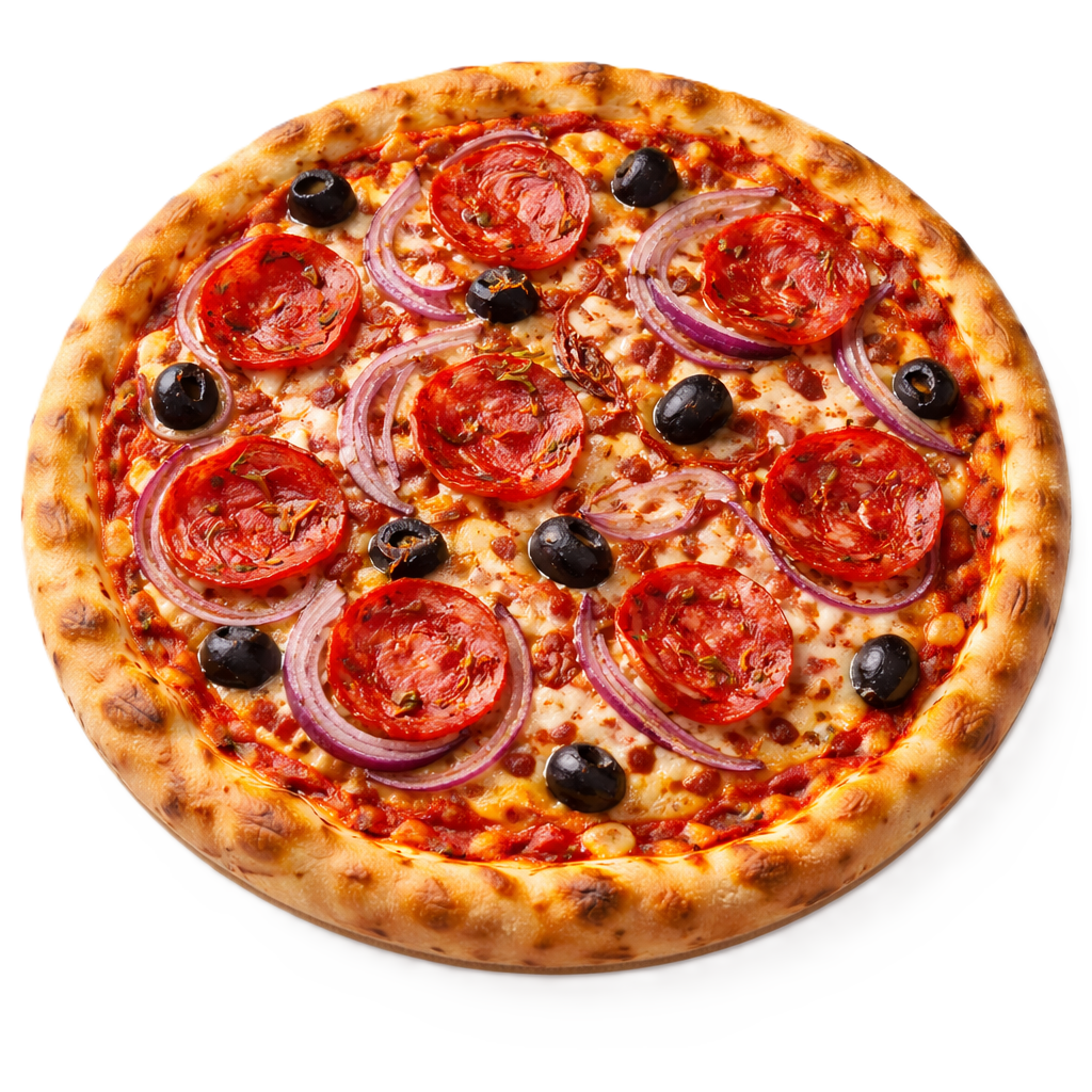 Crema di 'Nduja, Mozzarella, Cipolla Rossa, Salame Piccante, Olive e Fili di Peperoncino