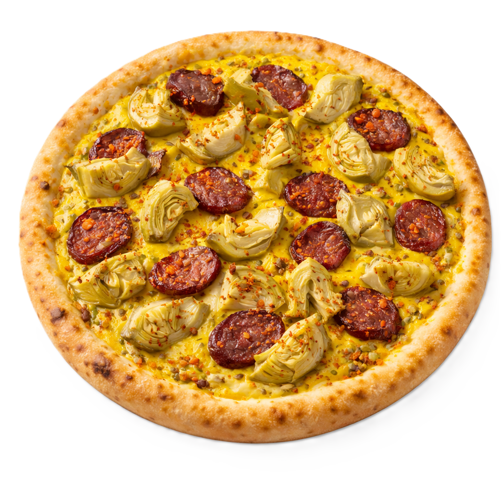 Crema Zafferano, Salame Affumicato, Carciofi e Pepe all'Arancia